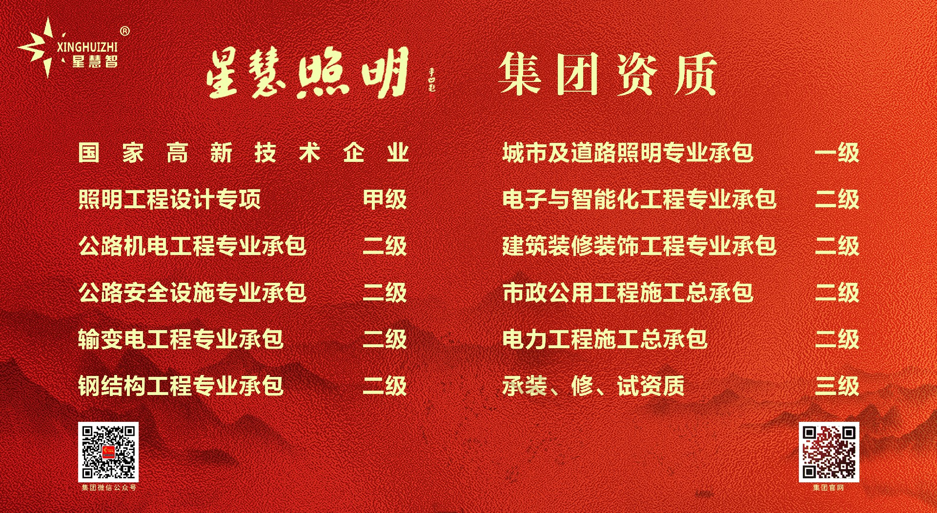 星慧照明工程集團(tuán)有限公司坐落在中國(guó)路燈制造基地:江蘇省高郵市送橋鎮(zhèn)天山工業(yè)園區(qū)星揚(yáng)路。公司成立于1999年,注冊(cè)資金5058萬(wàn)元,廠區(qū)占地8萬(wàn)多平方米,建筑面積6.5萬(wàn)多平方米,主要下轄三大功能生產(chǎn)廠區(qū)和兩處商務(wù)運(yùn)營(yíng)中心及集團(tuán)行政總部,是一家集科研、設(shè)計(jì)、生產(chǎn)、銷(xiāo)售、施工服務(wù)為一體的大型戶(hù)外照明產(chǎn)品制造商和集成運(yùn)營(yíng)商。星慧照明工程集團(tuán)資質(zhì)實(shí)力雄厚,目前擁有“城市及道路照明專(zhuān)業(yè)承包一級(jí)資質(zhì)”、“照明工程設(shè)計(jì)專(zhuān)項(xiàng)甲級(jí)資質(zhì)”、“電子與智能化工程專(zhuān)業(yè)承包二級(jí)資質(zhì)”、“公路安全設(shè)施專(zhuān)業(yè)承包二級(jí)資質(zhì)”、“公路機(jī)電工程專(zhuān)業(yè)分項(xiàng)承包二級(jí)資質(zhì)”、“建筑裝修裝飾工程專(zhuān)業(yè)承包二級(jí)資質(zhì)”、“市政公用工程施工總承包二級(jí)資質(zhì)”、“鋼結(jié)構(gòu)工程專(zhuān)業(yè)承包二級(jí)資質(zhì)”、“電力工程施工總承包二級(jí)資質(zhì)”、“輸變電工程專(zhuān)業(yè)承包二級(jí)資質(zhì)”、“承裝(修、試)”三級(jí)資質(zhì)。公司榮幸被評(píng)為省重合同守信用企業(yè)、省質(zhì)量信得過(guò)企業(yè)、AAA級(jí)資信企業(yè),并成功通過(guò)ISO9001:2015質(zhì)量體系認(rèn)證、ISO14001:2015環(huán)境體系認(rèn)證、“CE”認(rèn)證及“CCC”及“CQC”國(guó)家強(qiáng)制性產(chǎn)品認(rèn)證、中國(guó)節(jié)能產(chǎn)品認(rèn)證。公司成立江蘇省研究生工作站,并先后榮獲江蘇省名牌產(chǎn)品、省著名商標(biāo)、高郵市市長(zhǎng)質(zhì)量獎(jiǎng)、揚(yáng)州市百?gòu)?qiáng)民營(yíng)企業(yè)等榮譽(yù)證書(shū),被江蘇省認(rèn)定為企業(yè)技術(shù)中心,并順利通過(guò)安全生產(chǎn)標(biāo)準(zhǔn)化二級(jí)企業(yè)驗(yàn)收并取得證書(shū),為企業(yè)的跨越性發(fā)展打下健康穩(wěn)健的基礎(chǔ)!集團(tuán)公司的產(chǎn)品主要包括:智慧